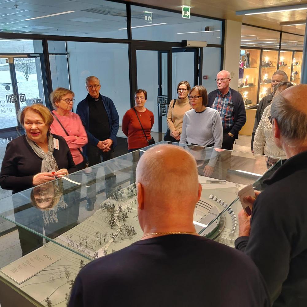 Seniorit Tallinnassa tutustumassa Taidemuseo Kumuun. Illallinen nautittiin Tallink City Hotellissa.