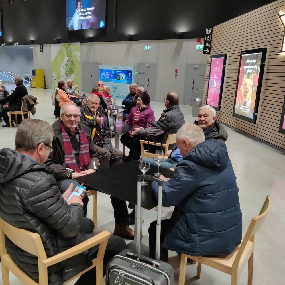 Saavuimme Vaasan asemalle 10.3.23 iltapäivällä. Junalakkokaan ei olisi pysäyttänyt senioreita, vaan olimme varautuneet tarvittaessa omiin kyyteihin.