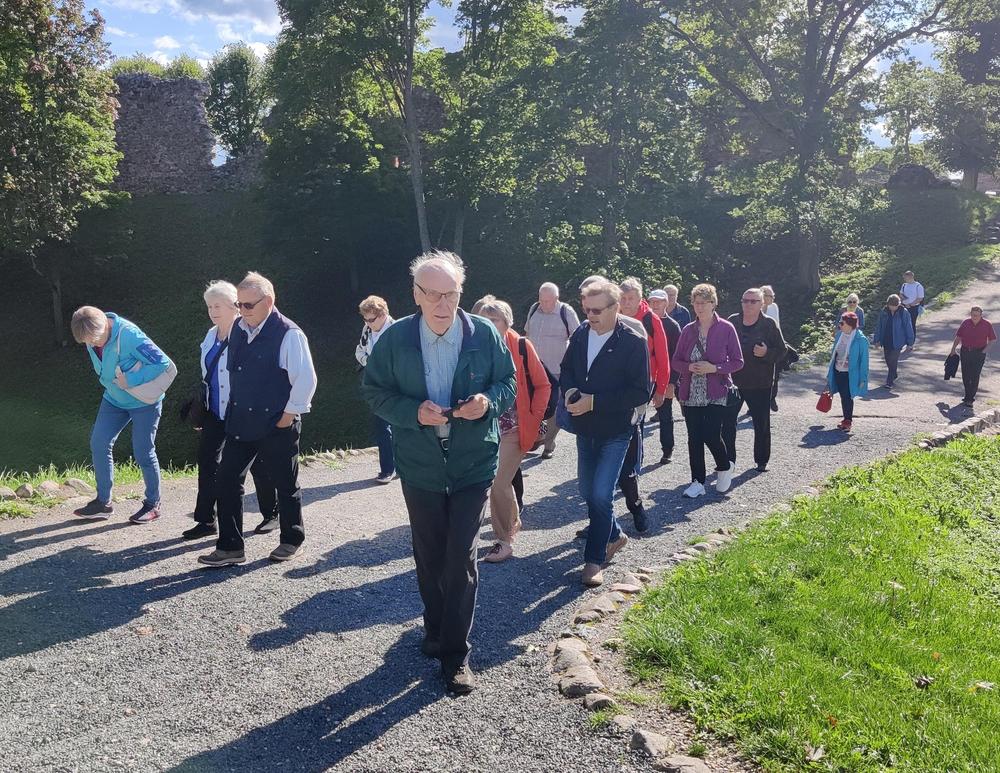 Perjantaina teimme bussiretken Viljandiin saman oppaan johdolla. Siellä olisi toki ollut paljonkin nähtävää, mutta puolipäiväretki ei antanut kaikkeen mahdollisuutta. Tutustumiskierroksella ehdimme nähdä Viljandin laululavan ja riippusillan ylityksen jälkeen Viljandin linnan rauniot sekä niiltä avautuvat upeat maisemat.