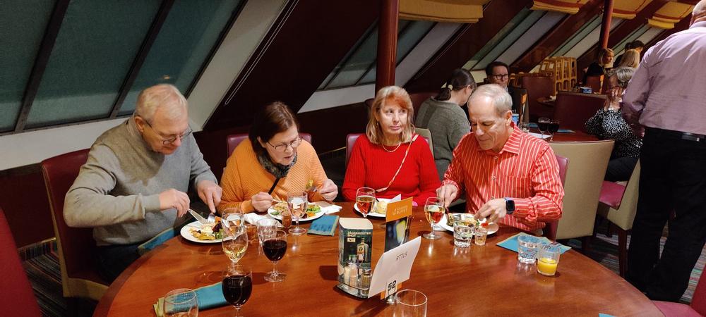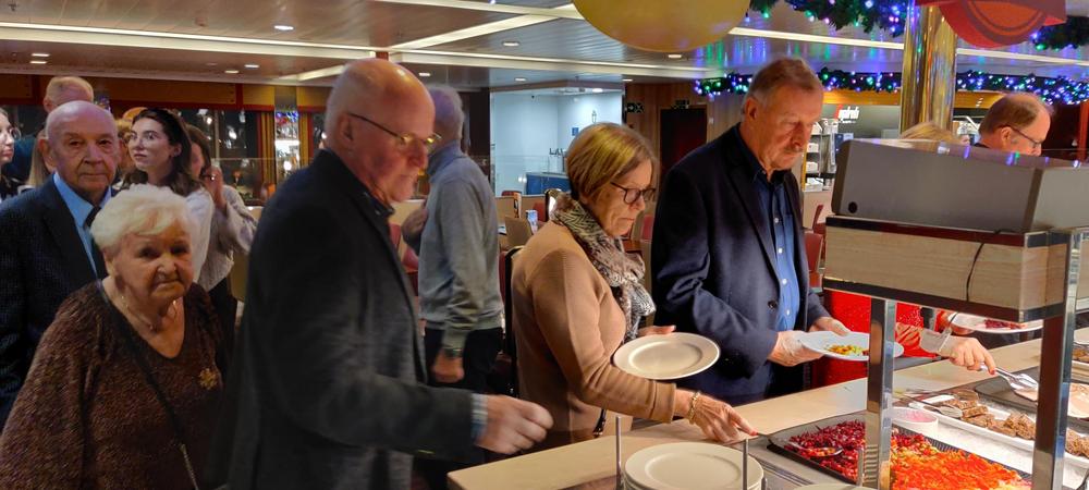 Laivaan nousun ja majoittumisen jälkeen ohjelmassa oli ruokailu Grande Buffetissa, missä
