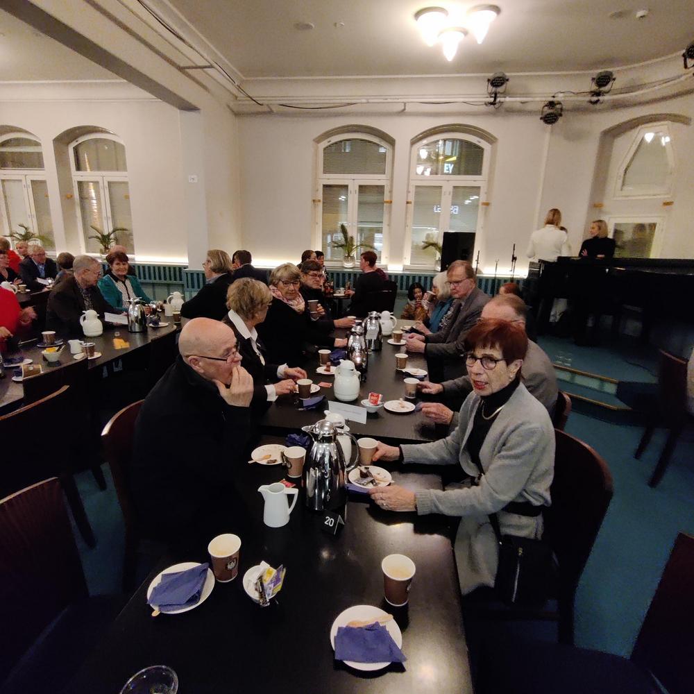 Tilaisuudessa nautittiin senioreiden kokousjuomat eli kuoharit.