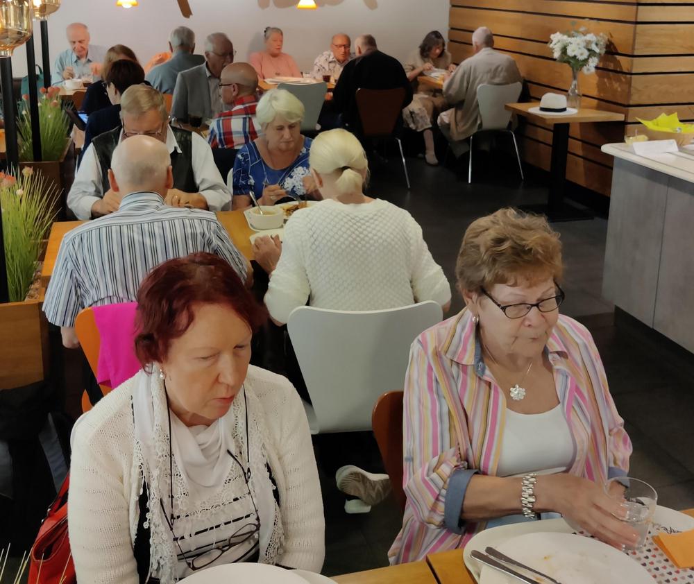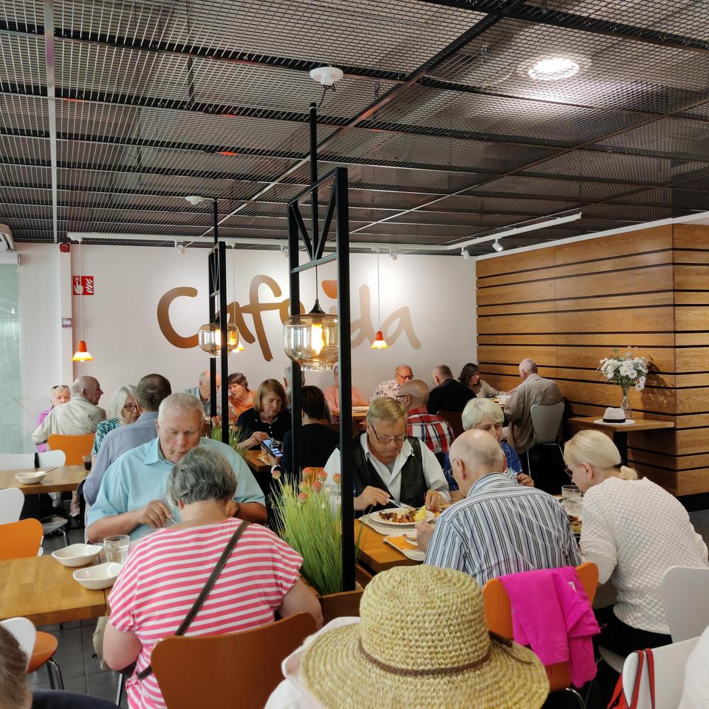 Väliajalla nautittiin vieressä olevalla tanssilavalla munkkikahvit ja teatterin jälkeen siirryttiin bussilla Kahvila Idaan ruokailemaan ja seurustelemaan ennen kotiinpaluuta. Kiitokset Riitalle, taas kerran nähtiin mikä apu paikallisella tuntemuksella on järjestelyjen kannalta.