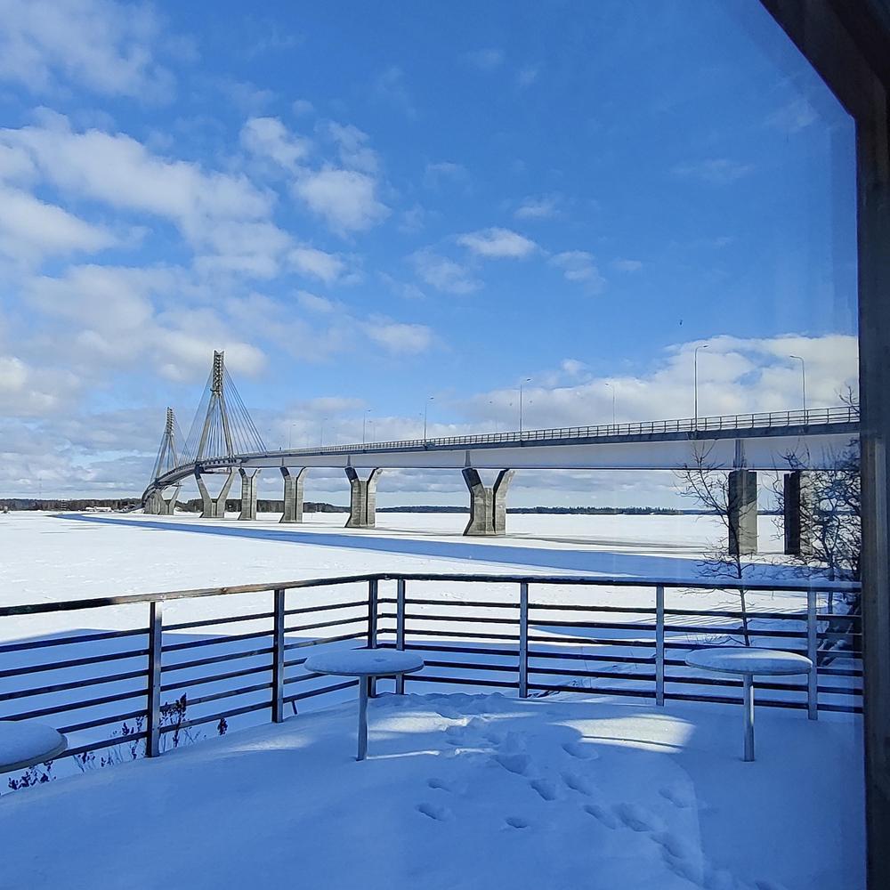 Asemalta nousimme bussiin ja siirryimme lounaspaikkaamme Bernysiin Raippaluodon sillan varteen Vaasan länsipuolelle Raippaluotoon. Ole Norrbackalla ja Mauri Pekkarisella oli ns. pekkarointiaikana kisa silloista. Norrbackan aikaansaannos oli sitten metrin pitempi, suomen pisin silta 1045 m ja se avattiin 1997. On se komea näky.
